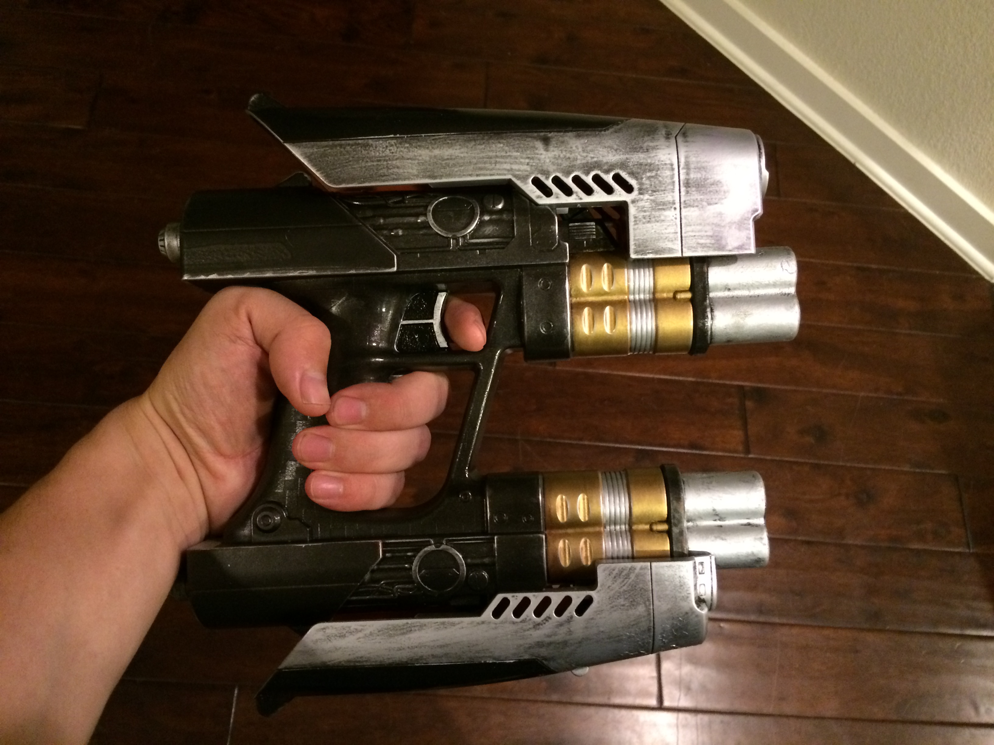 You may notice that I didn’t paint the barrel bluing onto the blaster. I actually tried a couple of different methods, but couldn’t get it right.  I think an airbrush would be the way to go, but I don’t have that kind of airbrush skill. Or an airbrush, for that matter.  And so, I elected to ignore that part of the paint job. I mean, at some point, Peter Quill’s blasters were new, right?